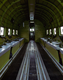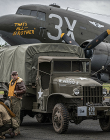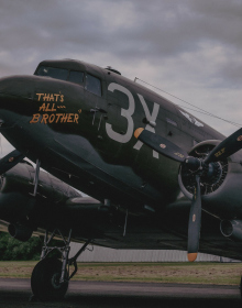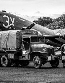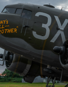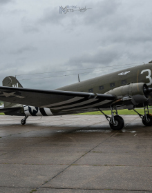 ‘Drag em Oot’ is a genuine D-Day Gooniebird, flying one of the earliest missions to drop members of the 82nd Airborne near St Mere Eglise in Normandy. She’s preserved in such a way as the original patches from bullet holes are still visible on the plane. She was delivered to the USAAF in 1943 and based in the UK at Greenham Common.