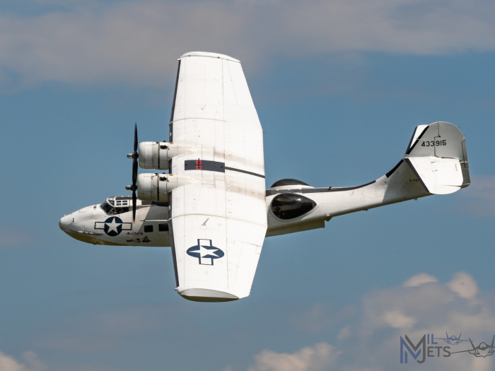 It was good to see “Miss Pick Up’ back displaying after recent exploits north of the Border in Loch Ness. Having broken down on the Loch, the Catalina Society had to work hard to get repairs done in time and the PBY-5A was able to return to the skies once more.